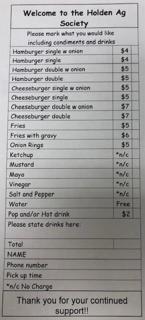 Lucky you! You get to enjoy our burgers again!! We are doing take out orders Saturday May 29 5-7pm. If the province allows us to do order in, we will accommodate that.